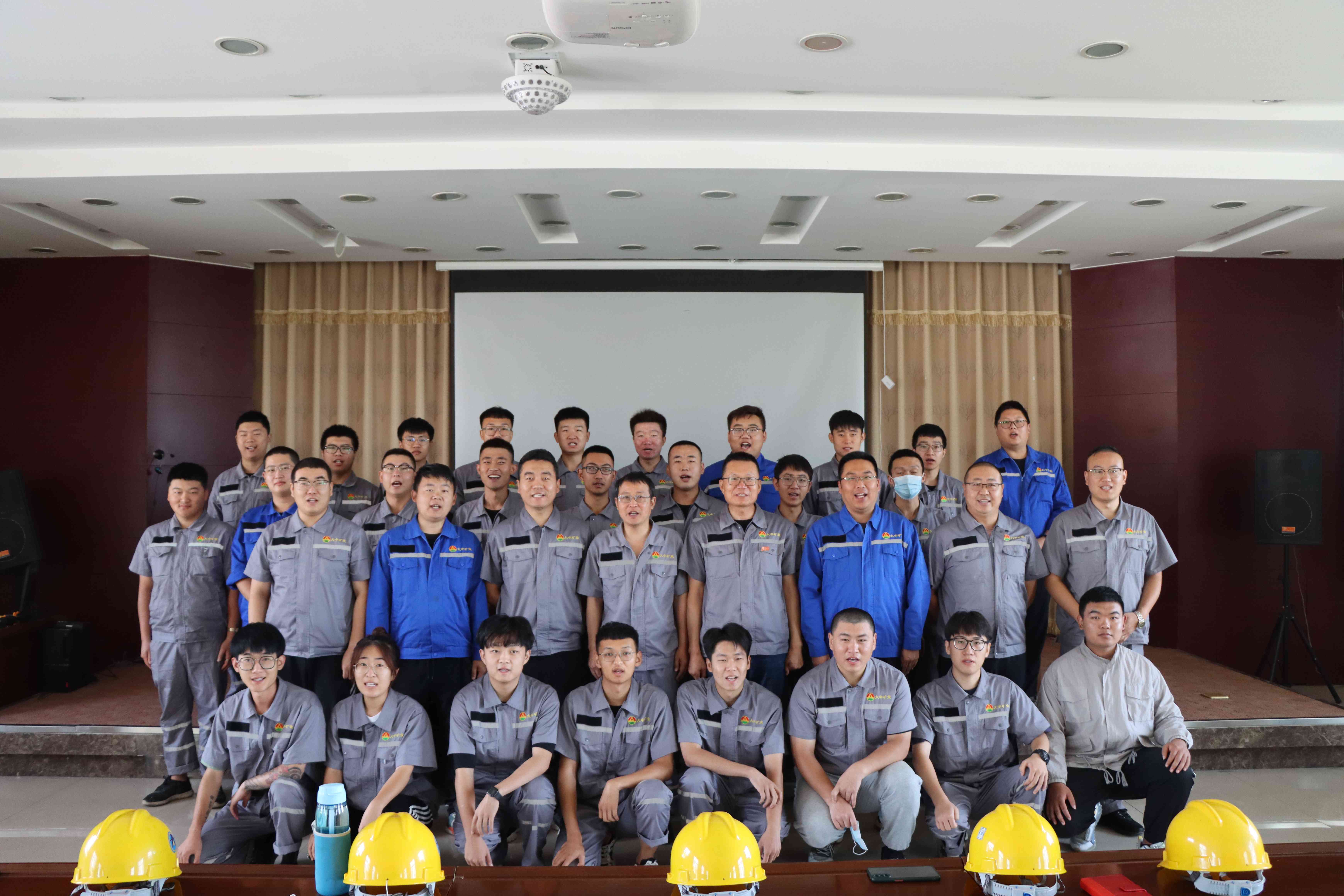 人资企管部经理总结汇报了前期近半个月集中培训中大学生们的学习现状,肯定了大学生们良好的精神风貌与积极学习的态度同时,也对即将步入轮岗学习阶段提出了新的学习要求;公司主要领导对大学生们轮岗,走入一线进行了鼓励,对于轮岗部门的负责人提出了培养的要求,注重大学生轮岗,更注重大学生们的工作安全;涉及到轮岗的机动部、1、2井、4井、书记沟选厂、调度室负责人均对大学生轮岗表态发言,欢迎大学生走入自己的部门,希望被分配的学生在部门中多学习,也配备优秀的师傅培养轮岗大学生;最后所有大学生与轮岗负责人及公司主要领导合影留念。