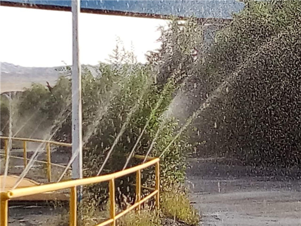 创新工作室还利用废旧钢管制作了洒水喷雾装置,分别在四号井、书记沟选厂安置,在日常的降尘洒水中,进行雾化降尘,效果极好。降低粉尘率提高了60%以上,大大降低了粉尘的危害。